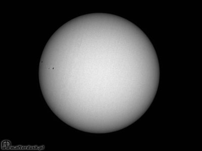 - Fotka powstała "przy okazji" obserwacji zaćmienia Słońca (dokładnie po jego zakończeniu). Pionowe smugi na tarczy to nie ślady po przejściu Księżyca, ale raczej efekt niezbyt czystej matrycy ;).